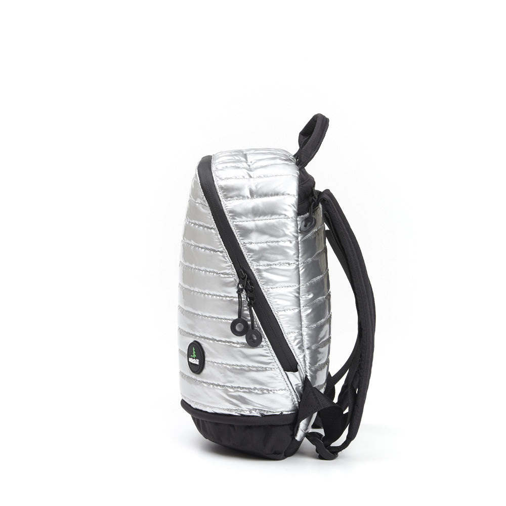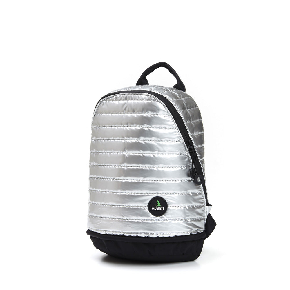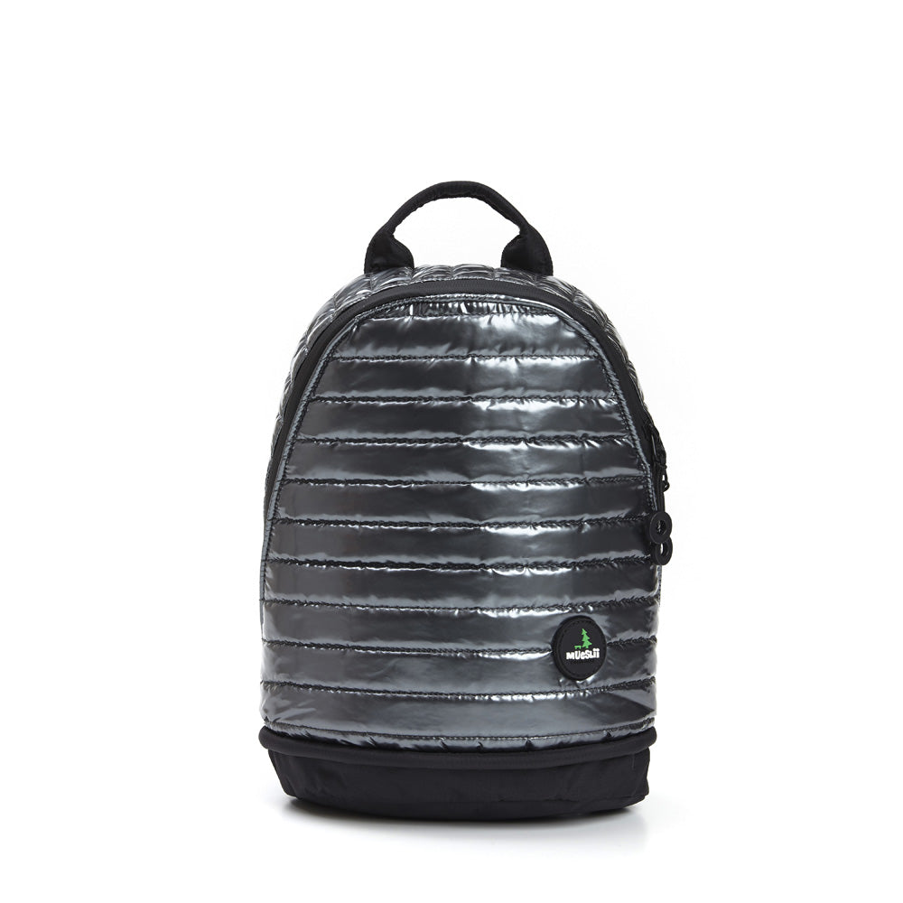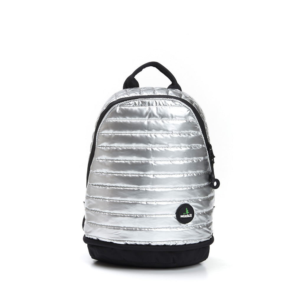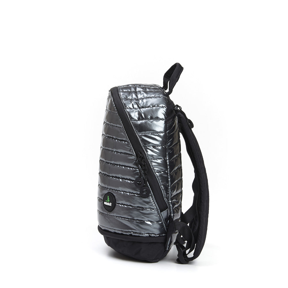 Horizontal stripes padded waterproof daily backpack, made with “metal” coated nylon or PU coated nylon.