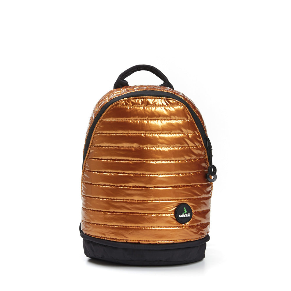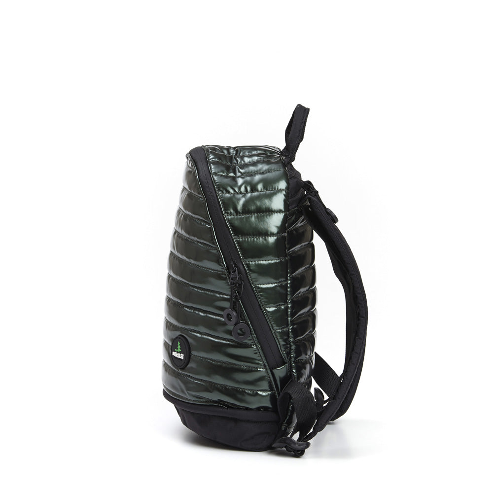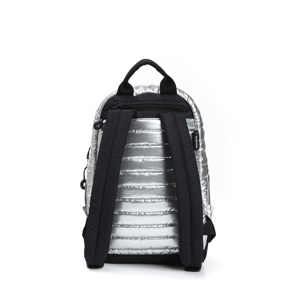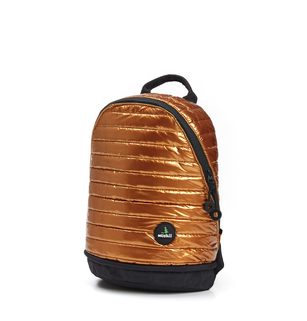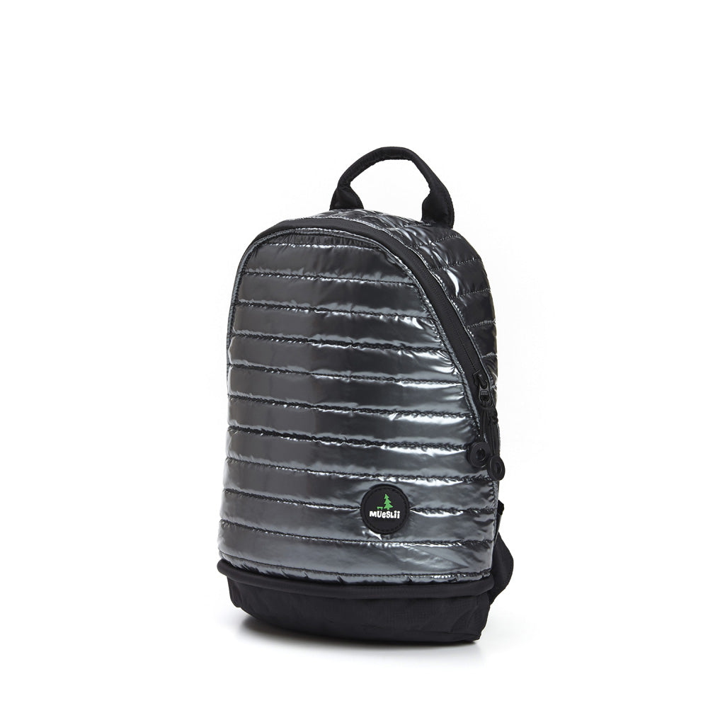 Horizontal stripes padded waterproof daily backpack, made with “metal” coated nylon or PU coated nylon.