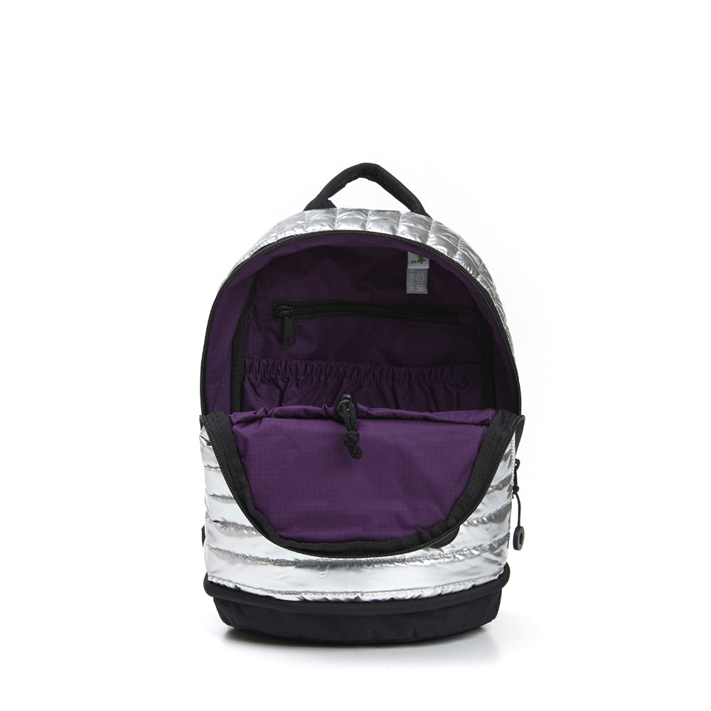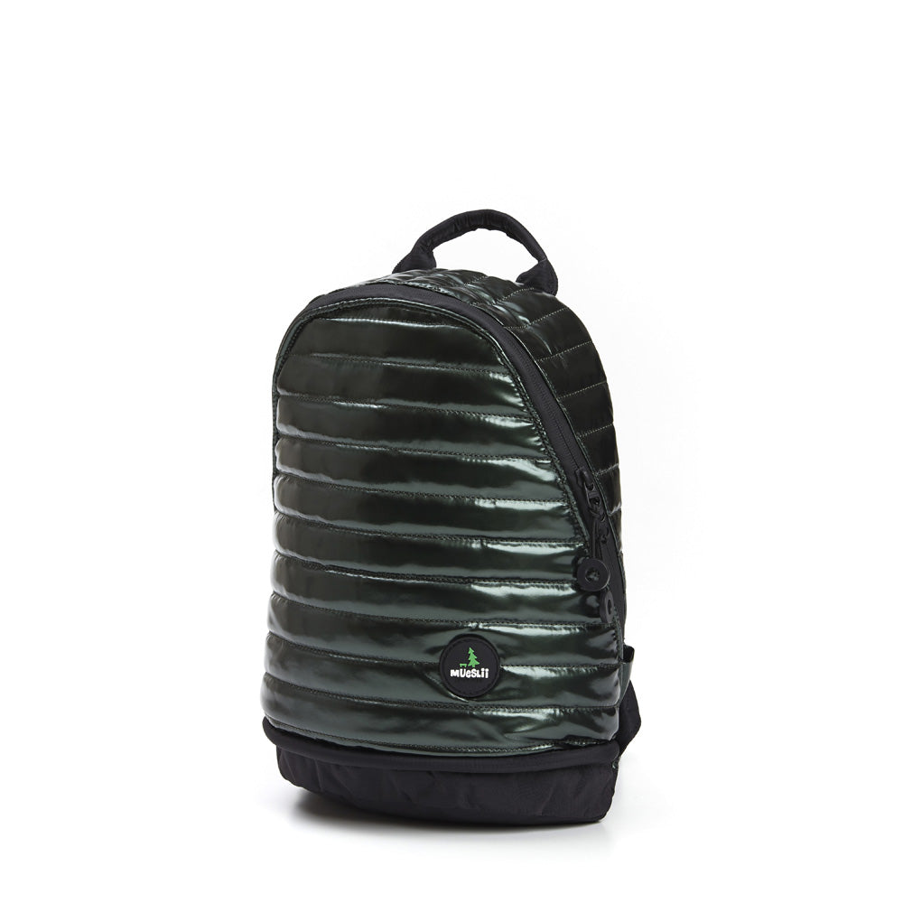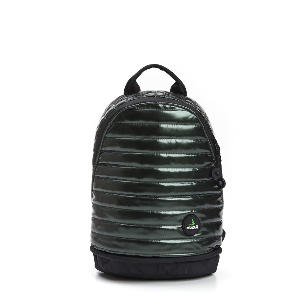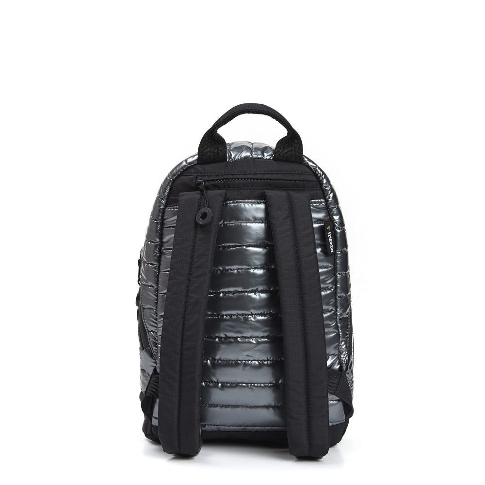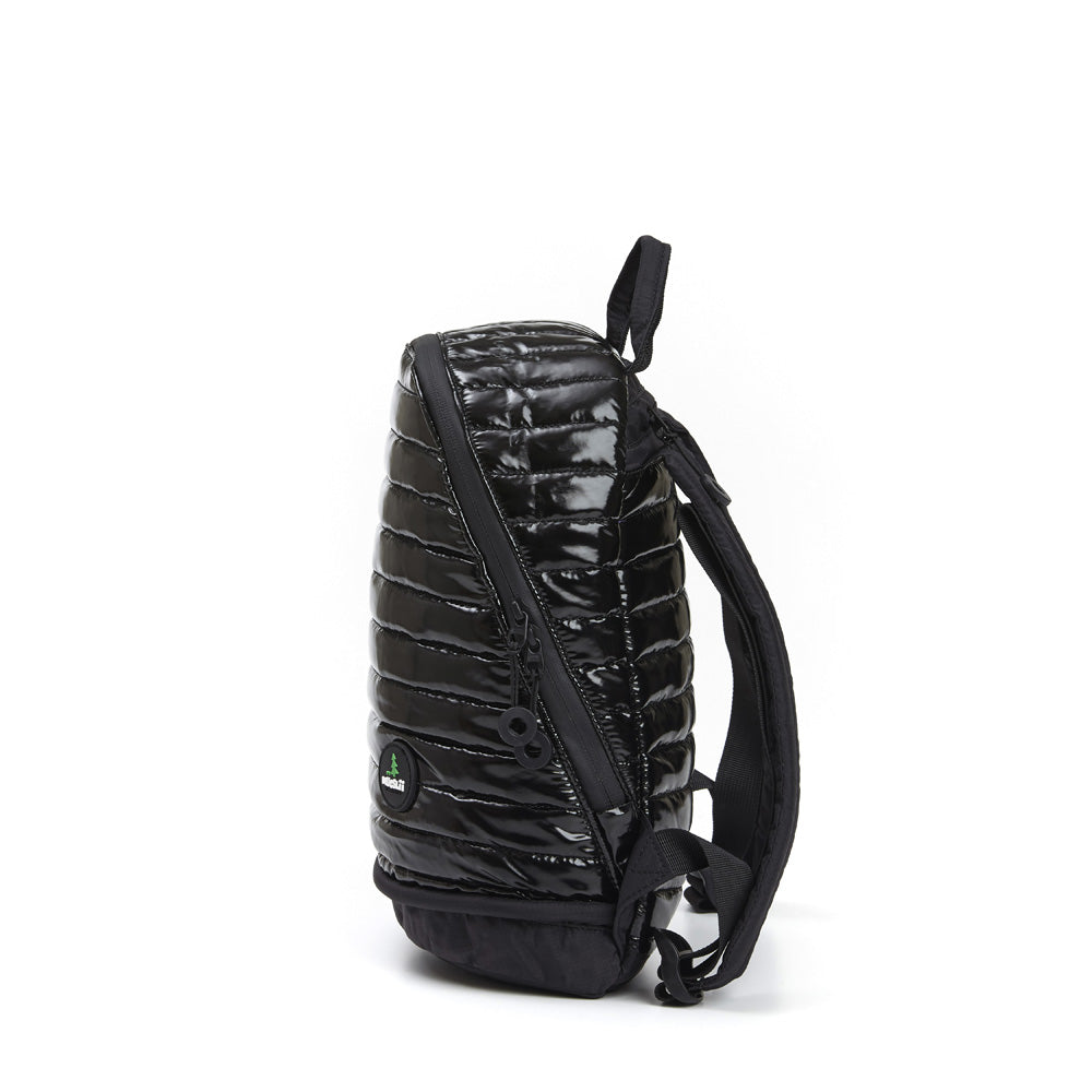 Horizontal stripes padded waterproof daily backpack, made with “metal” coated nylon or PU coated nylon.
