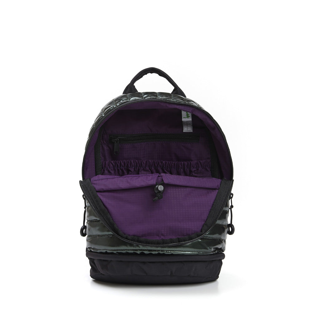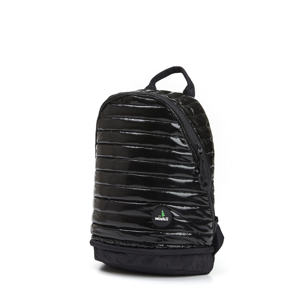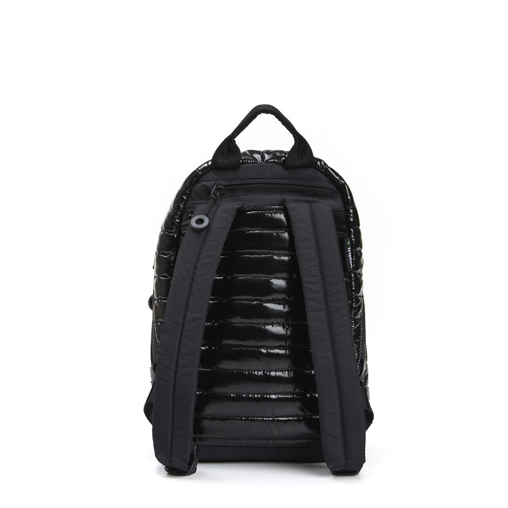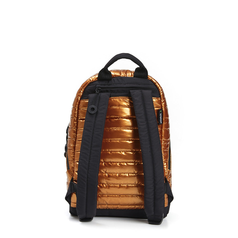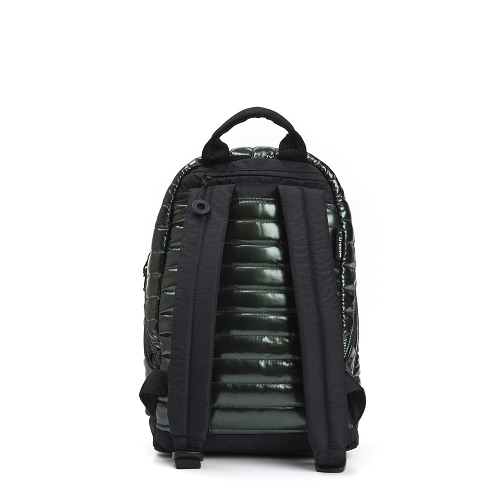 Horizontal stripes padded waterproof daily backpack, made with “metal” coated nylon or PU coated nylon.