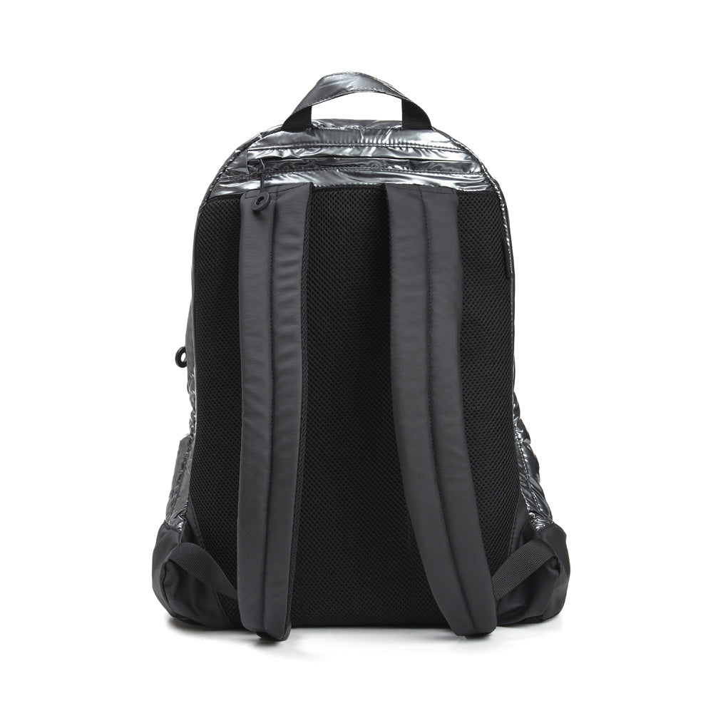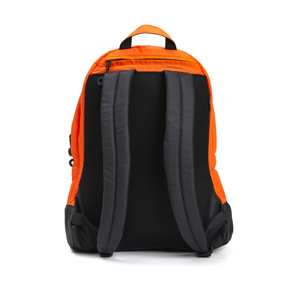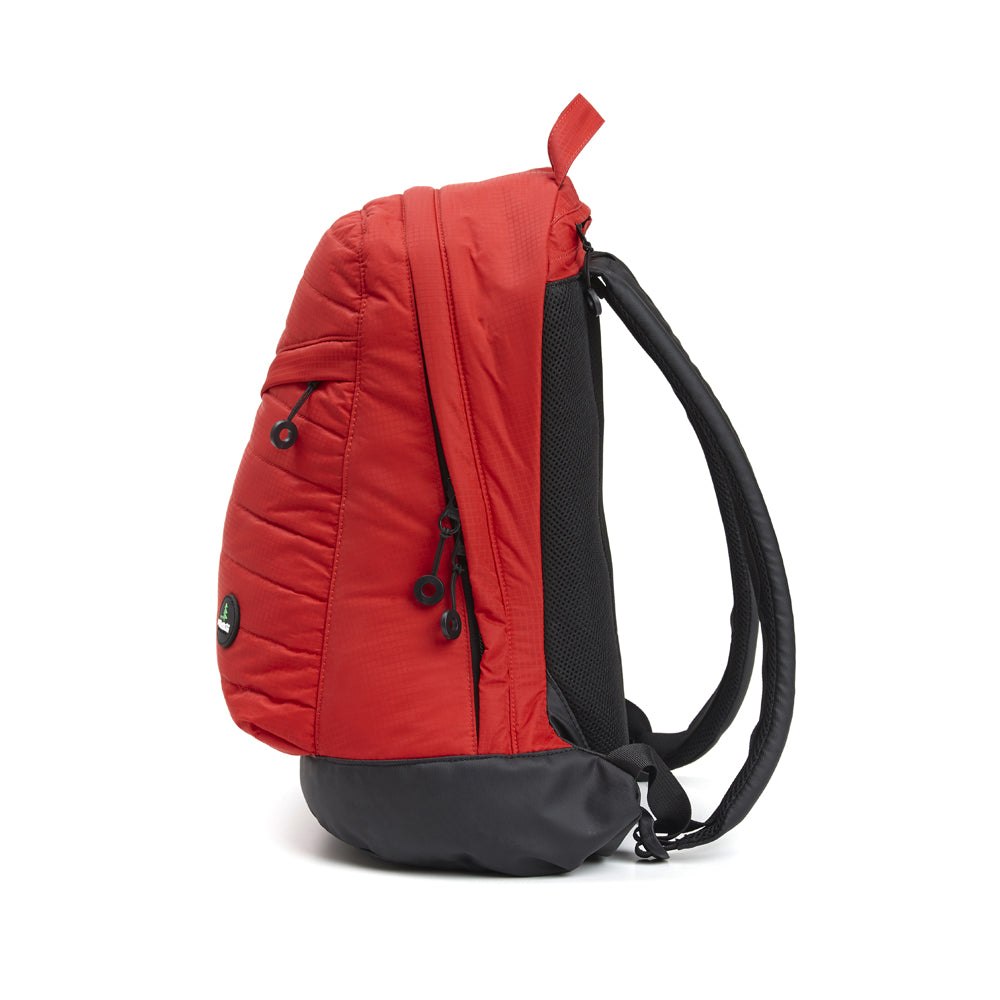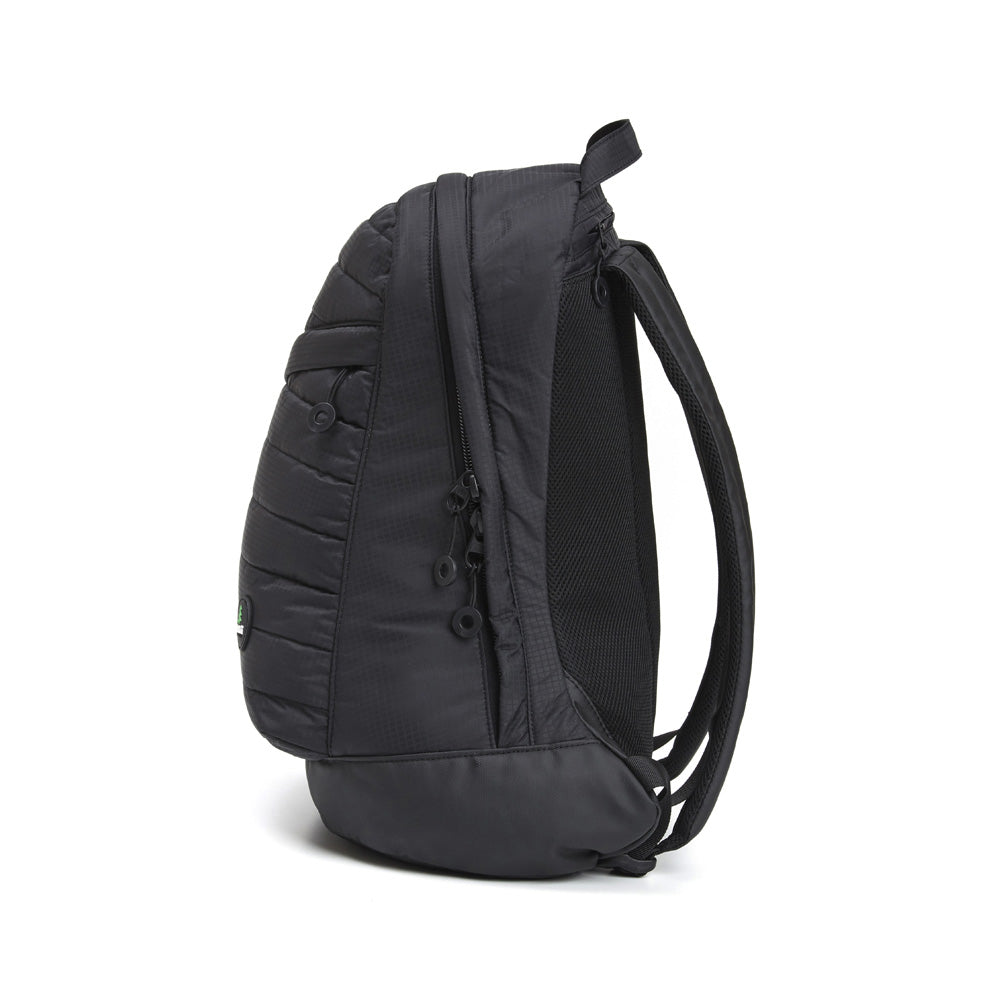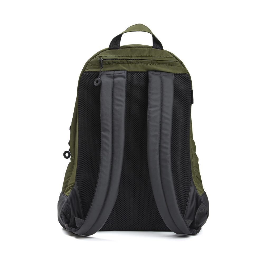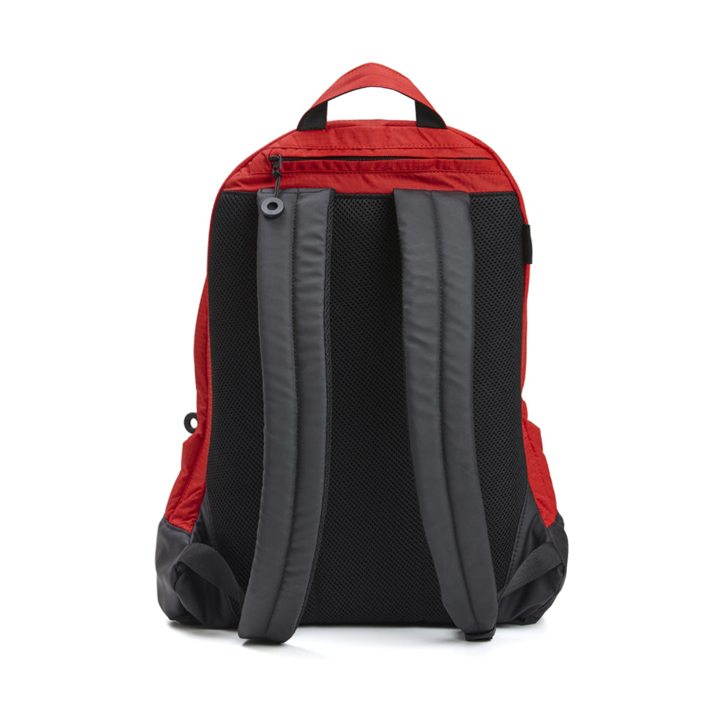 Horizontal stripes padded daily backpack with a sleek and elegant trapezium like shape, made of rip stop nylon