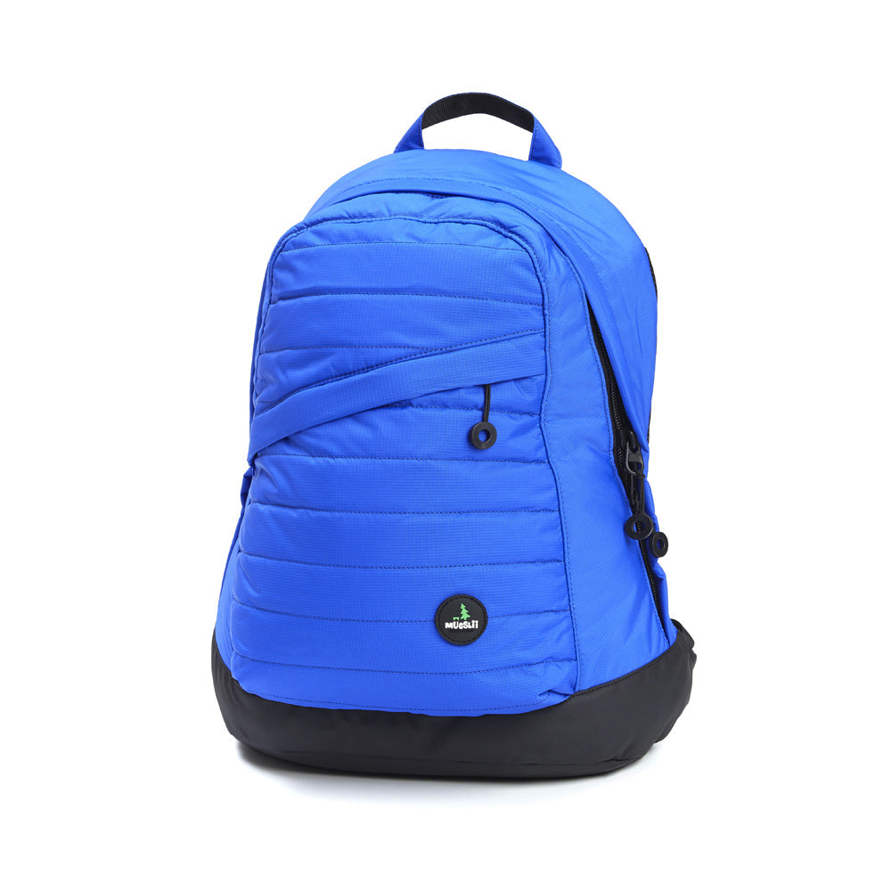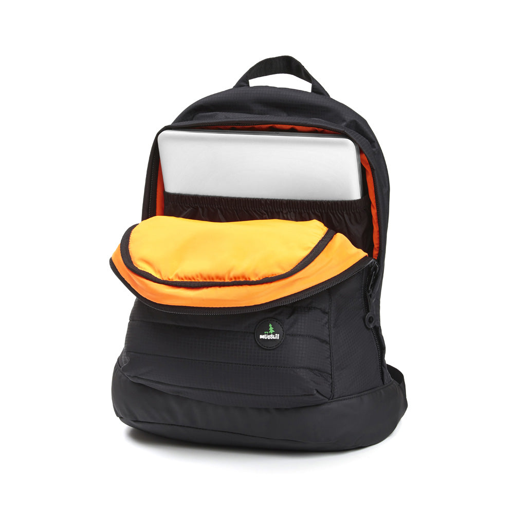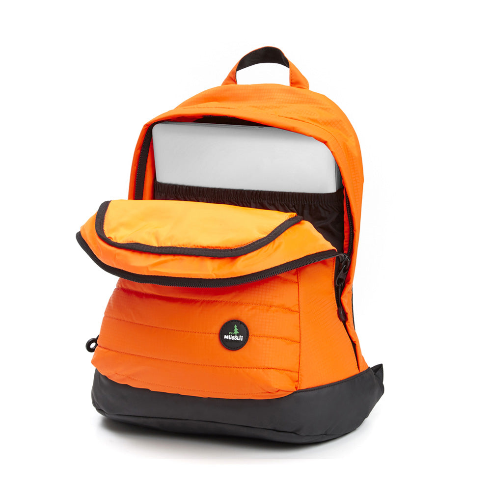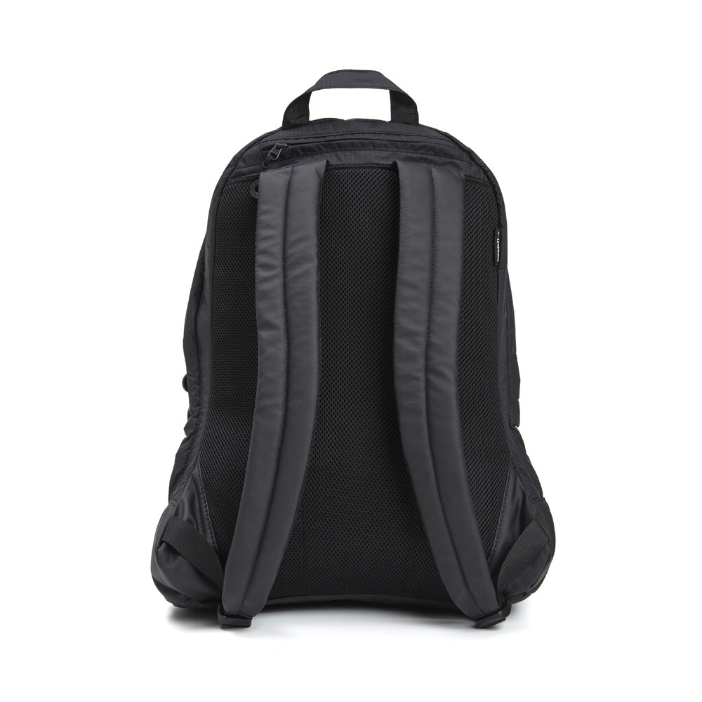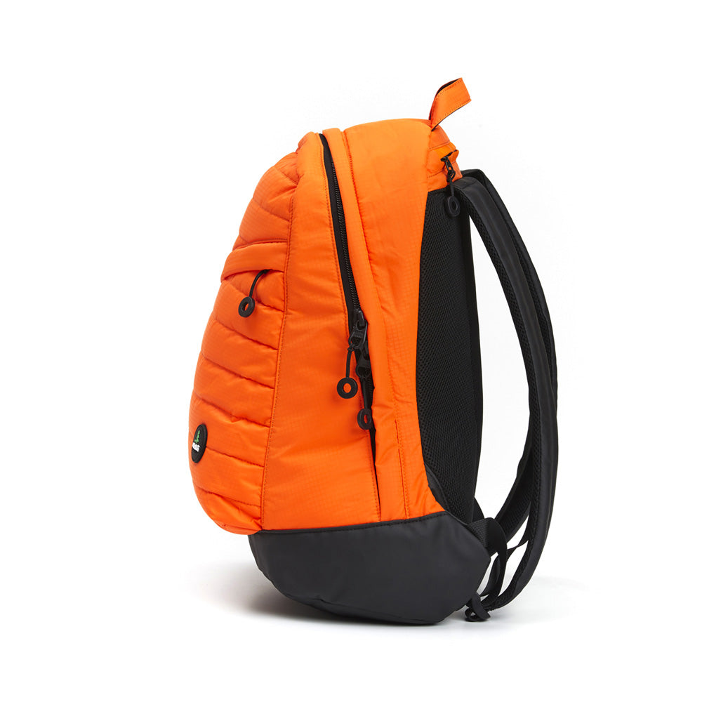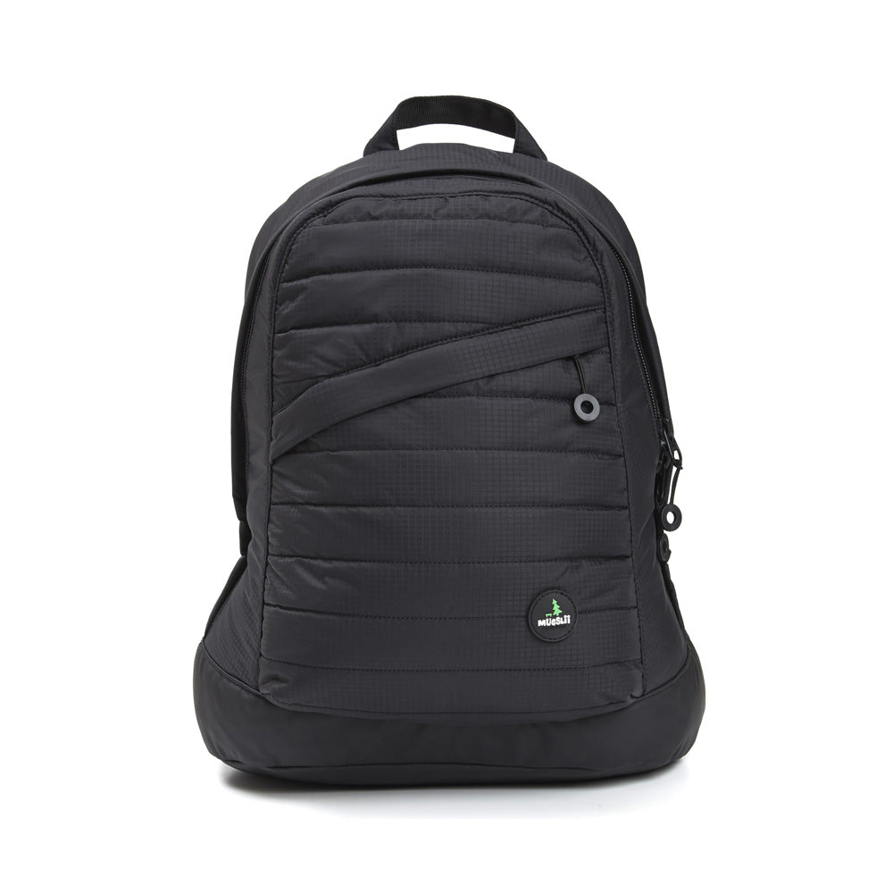Horizontal stripes padded daily backpack with a sleek and elegant trapezium like shape, made of rip stop nylon