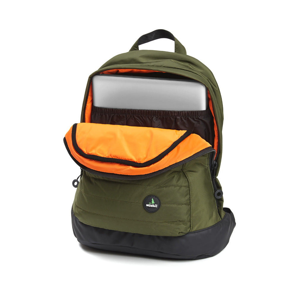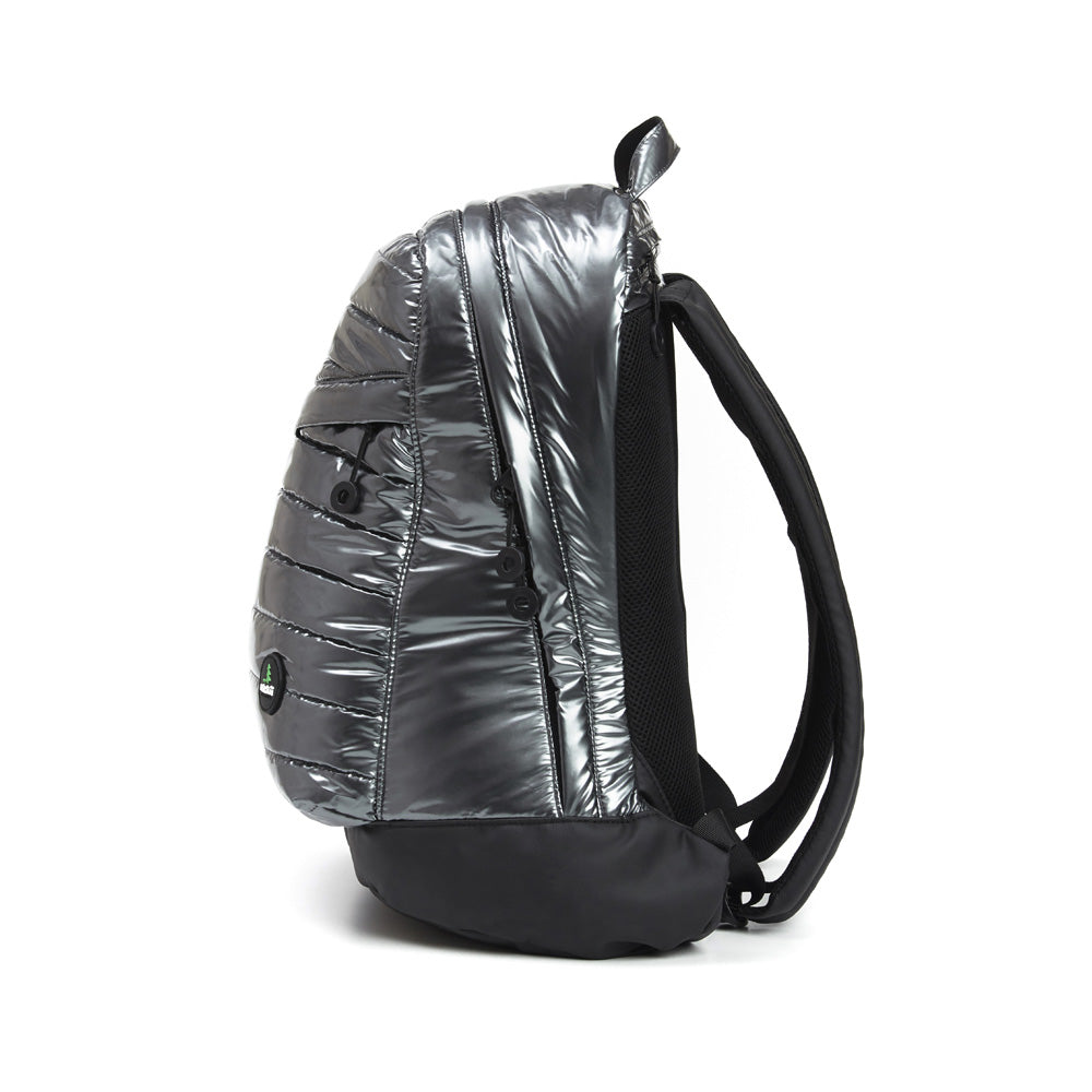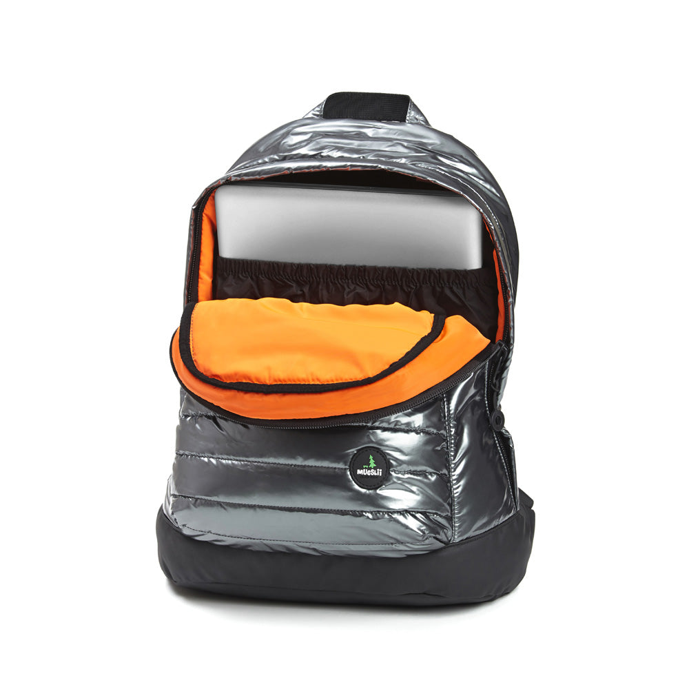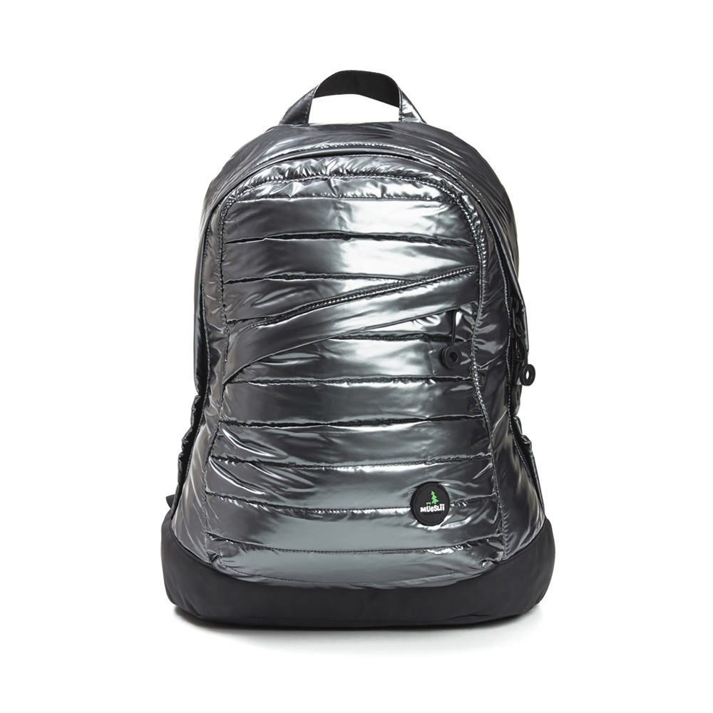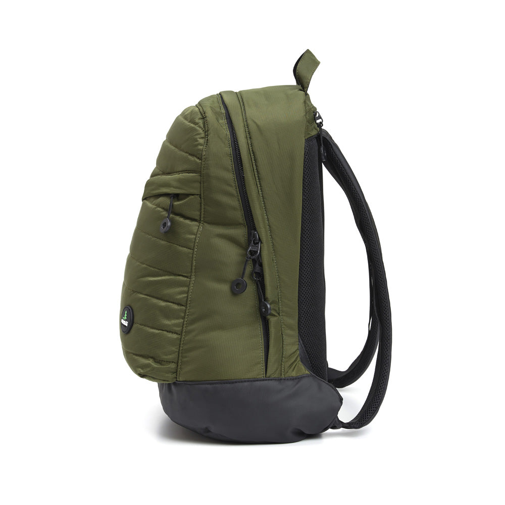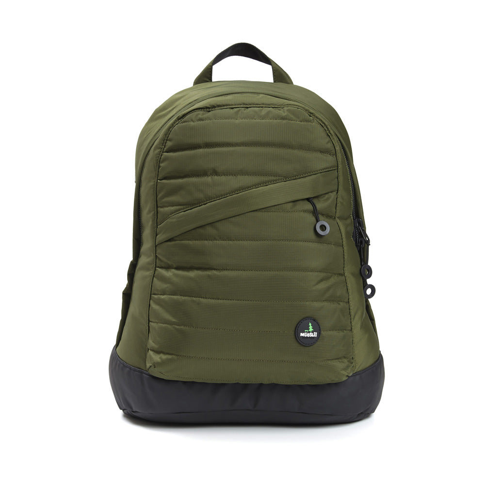 Horizontal stripes padded daily backpack with a sleek and elegant trapezium like shape, made of rip stop nylon