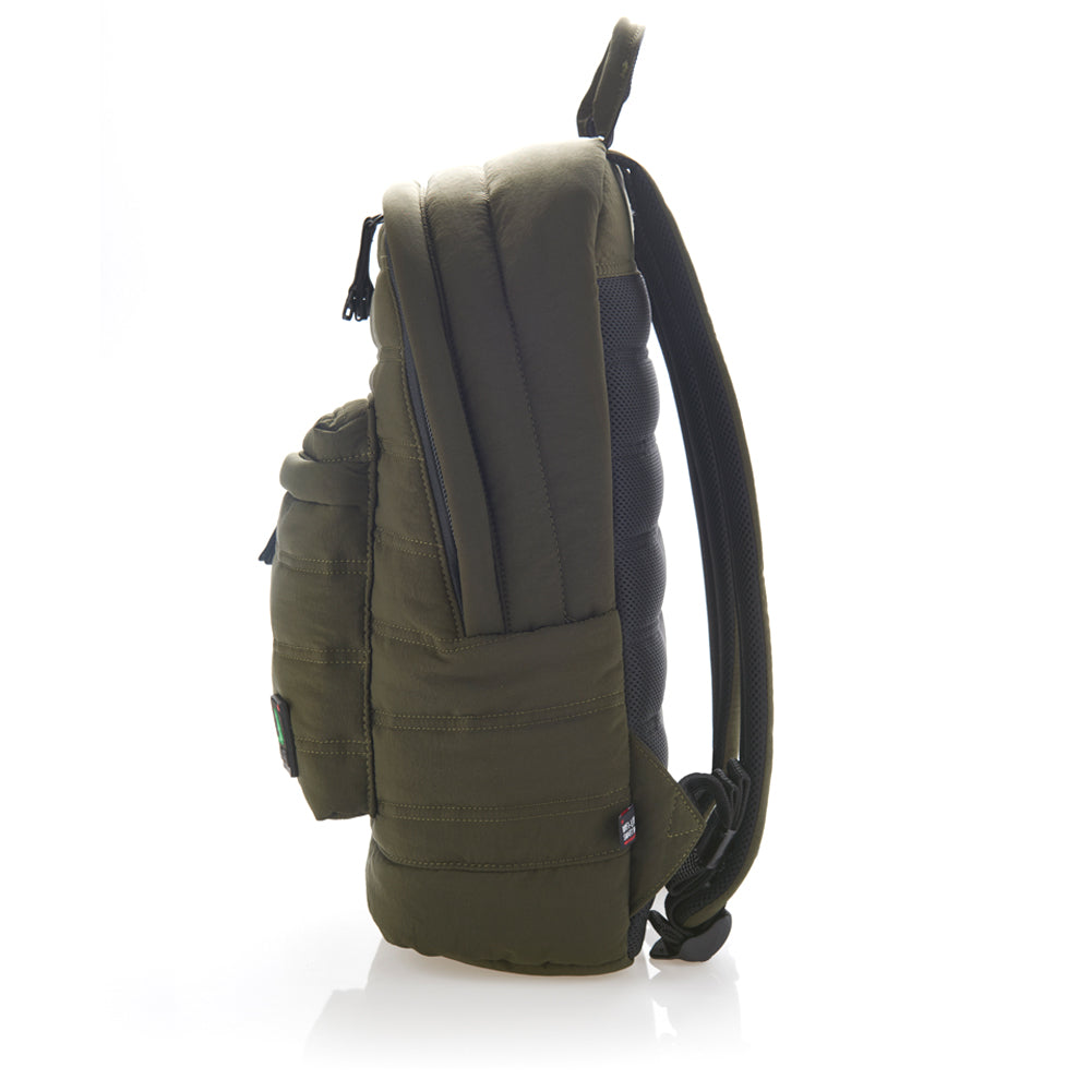 A perfect size for both leisure and school, RC1Quadro is a quilted medium/high capacity PUFFER backpack (25 liters) which will keep your tech gear safe and cushioned. Made of water resistant nylon, it's available in a wide range of colors and patterns.