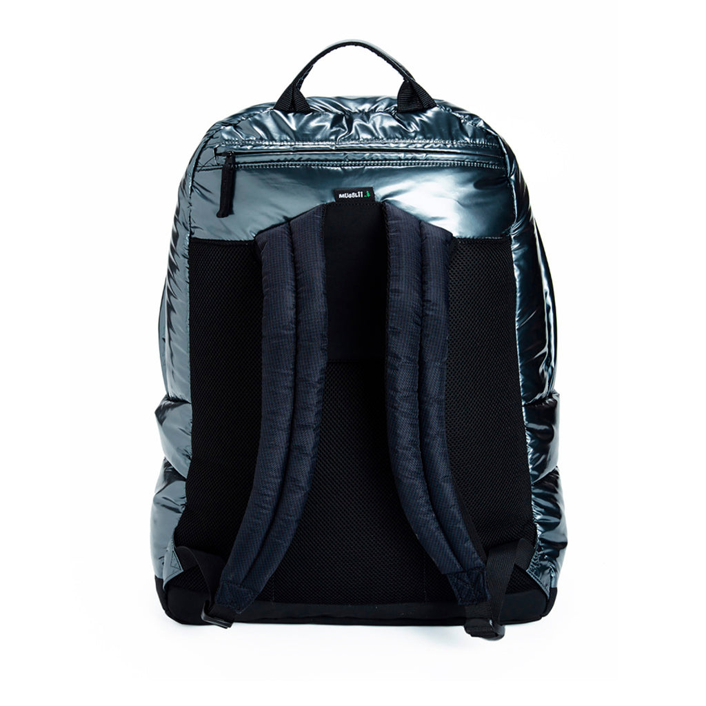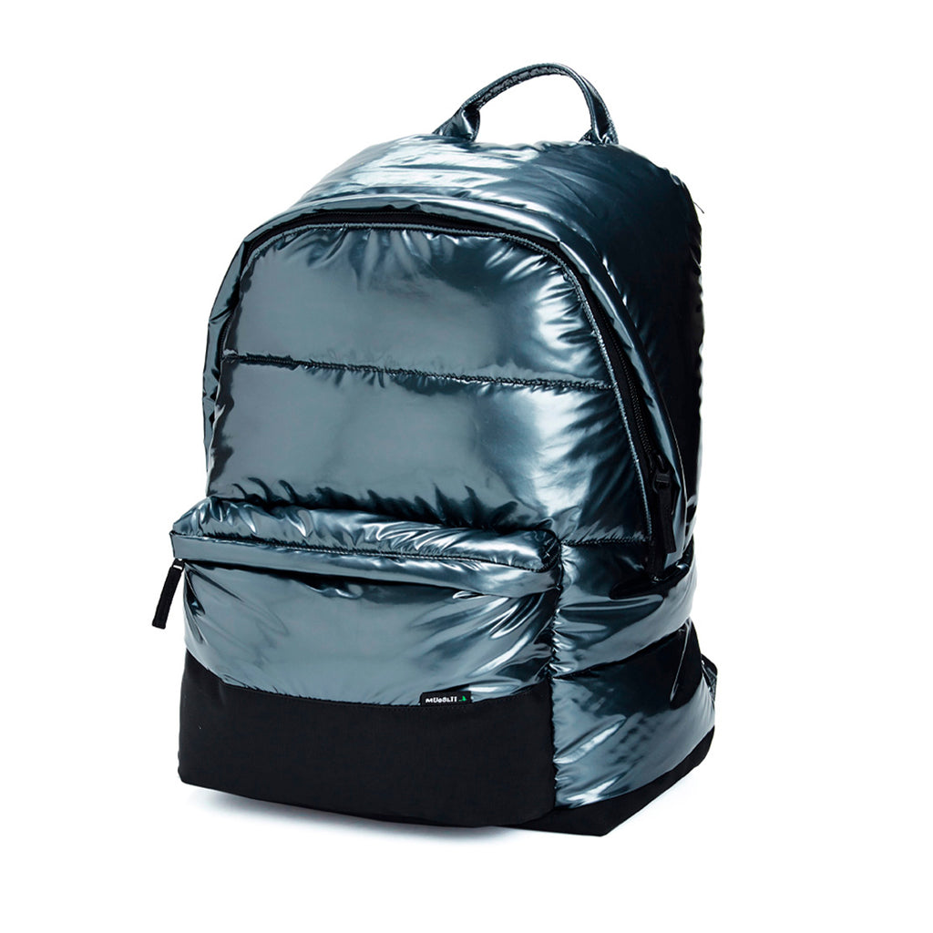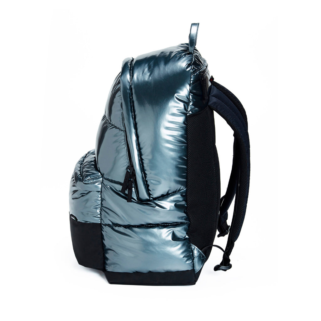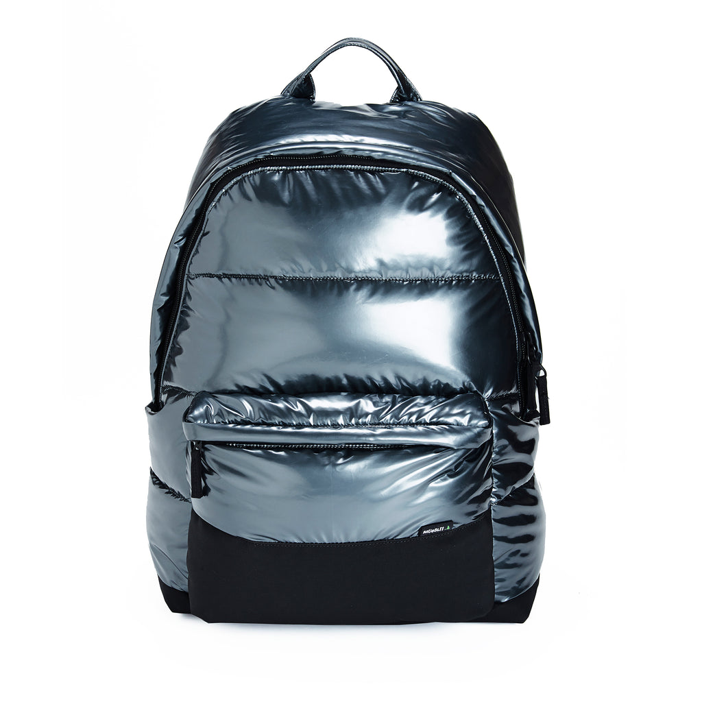 Oversize PUFFER backpack, the scaled up version of our classic design, with a capacity of almost 50 liters. Made of  water resistant “metal” coated nylon and Ykk zips.