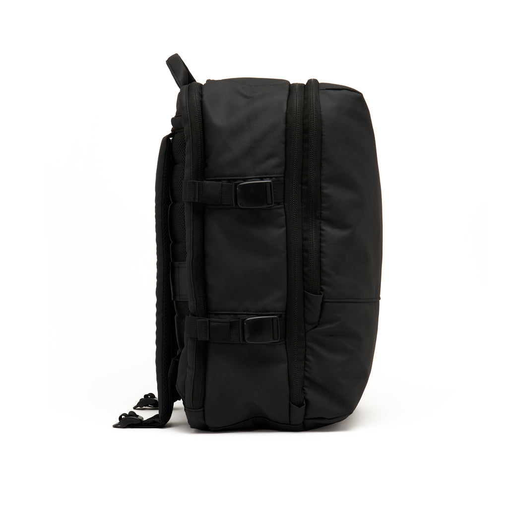 Minimal TRAVEL is a perfect cabin size backpack (30 liters), lightweight and expandable. Behind its minimalistic design there's a meticulous distribution of internal spaces, devised for the necessities of conscious travellers.