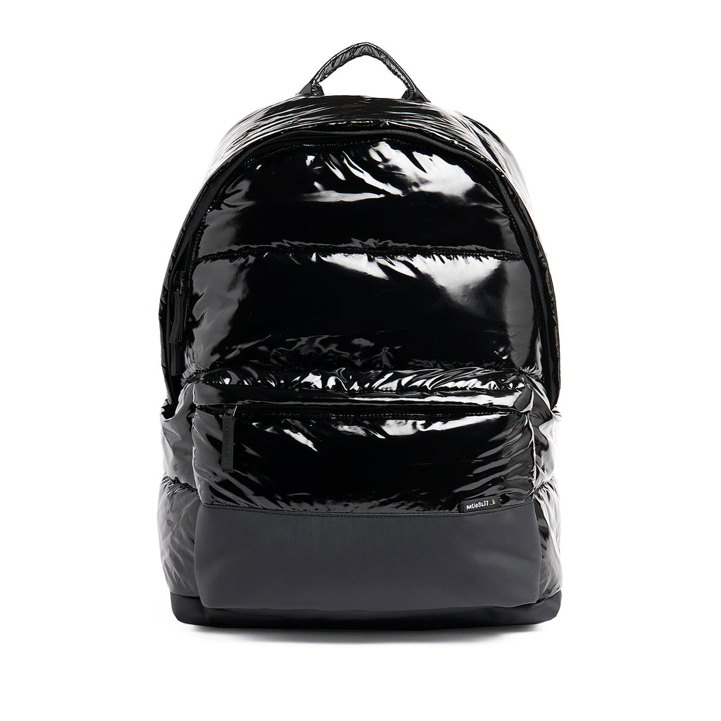 Oversize PUFFER backpack, the scaled up version of our classic design, with a capacity of almost 50 liters. Made of  water resistant “metal” coated nylon and Ykk zips.