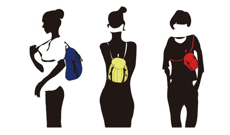 Mueslii's “3 ways”, an innovative system that makes possible to use this bag as a normal backpack, a shoulder bag and a pouch.