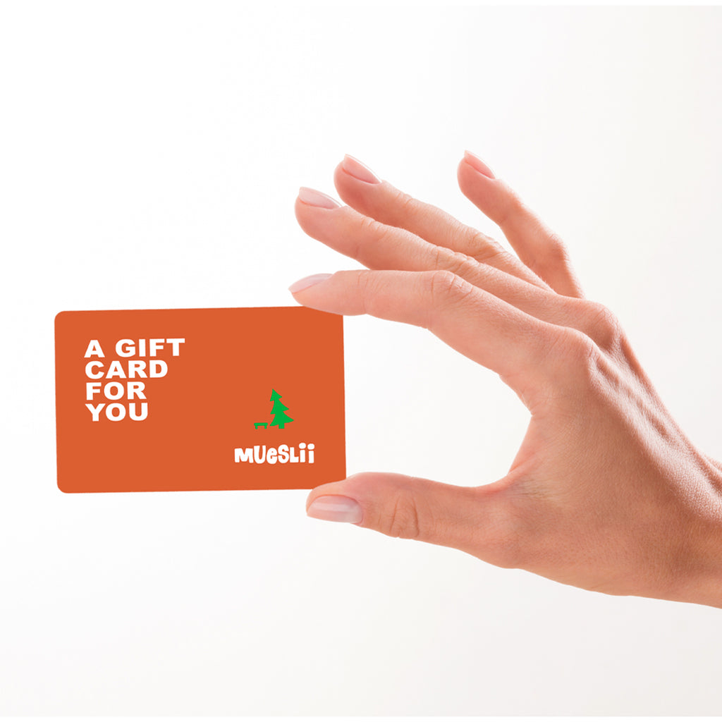 Are you lacking inspiration? Give the Mueslii Gift Card, available in 4 versions and valid for 12 months only online on the official www.mueslii.com website.
